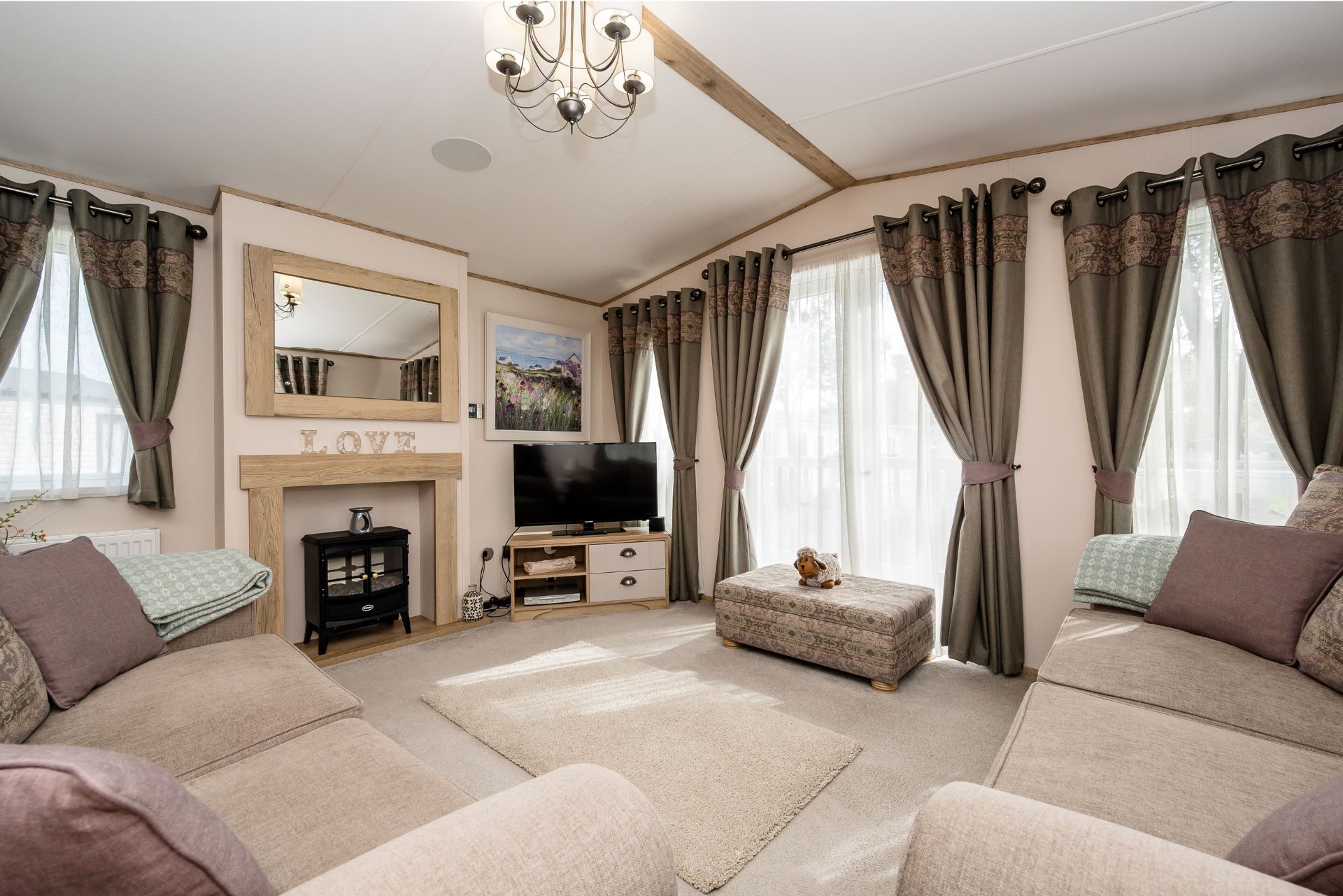 - Home-from-home styling with large, comfortable free-standing sofas (inc sofa bed to allow sleeping for 6)