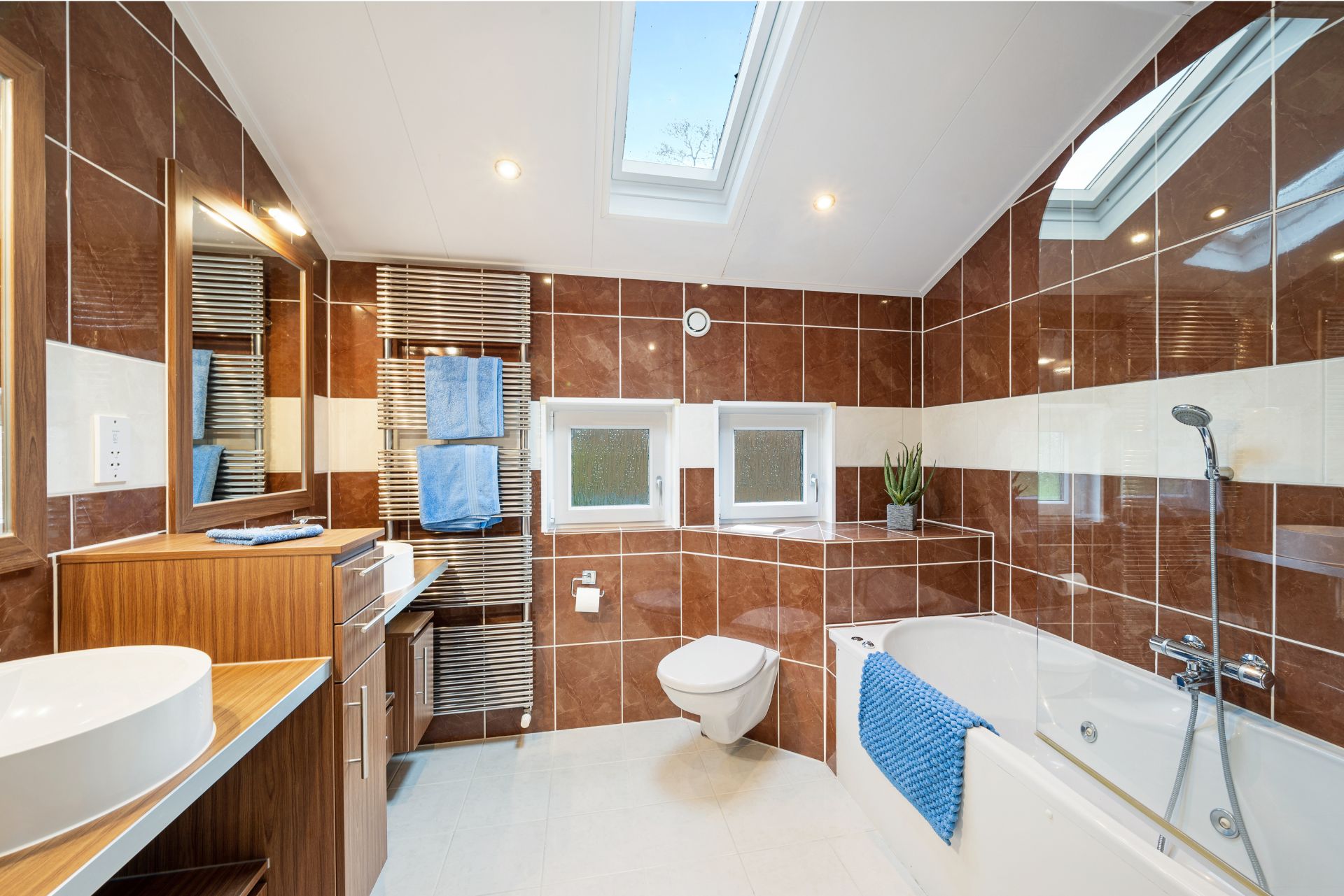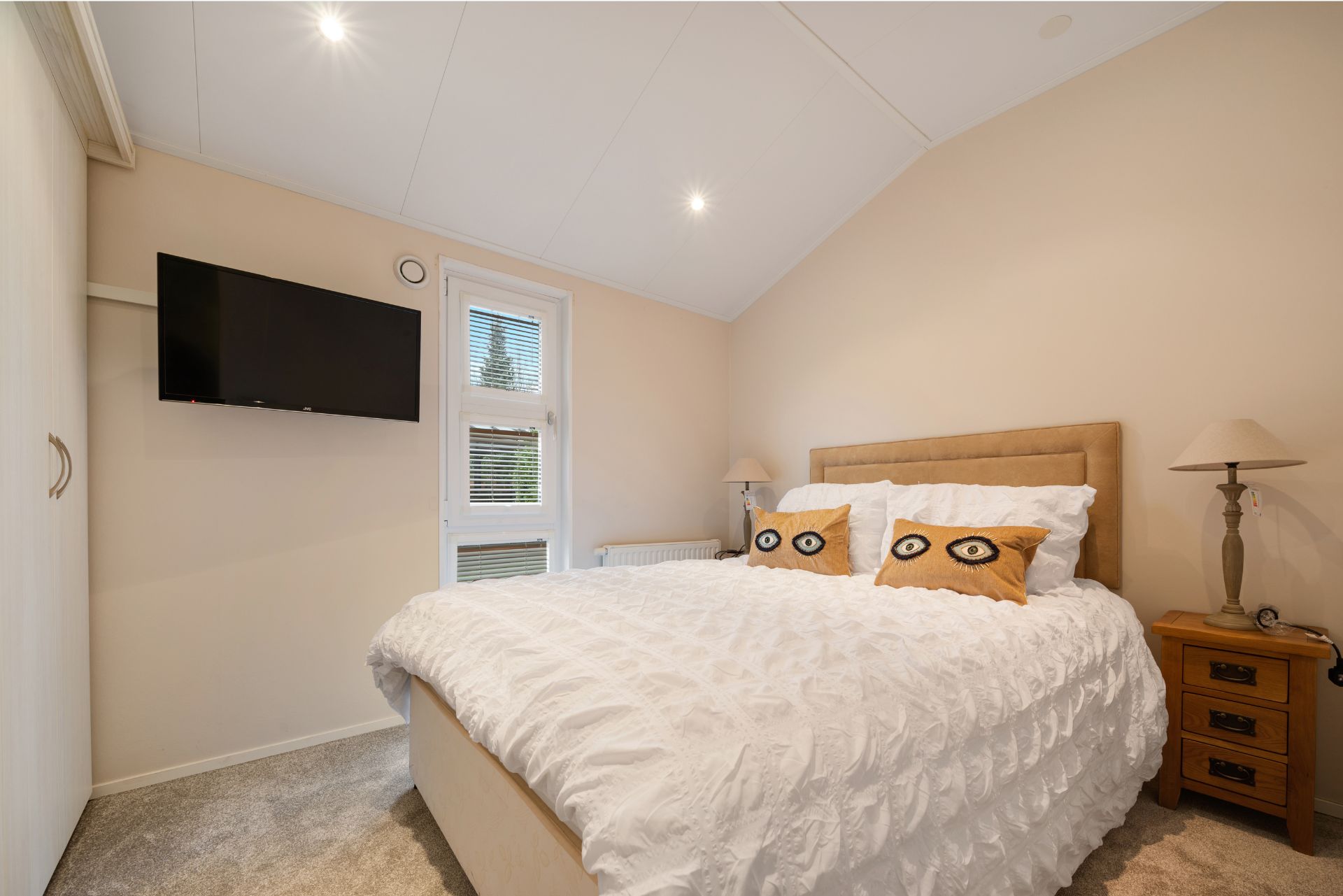 There are three spacious bedrooms in this lodge, the master bedroom has a king-sized bed with upholstered headboard, fitted wardrobes and a large en-suite with a bath. The second bedroom has a double bed and the second has two single beds, all with access to the family bathroom with large shower.