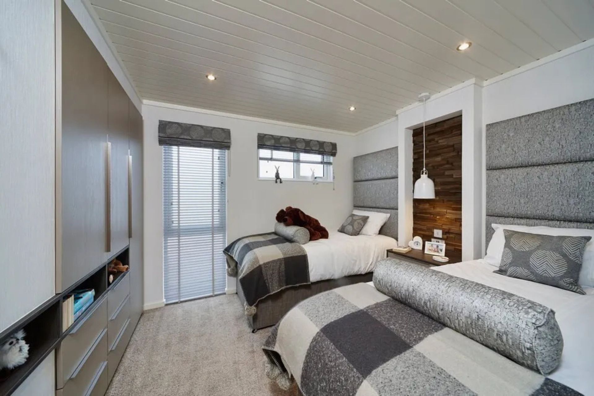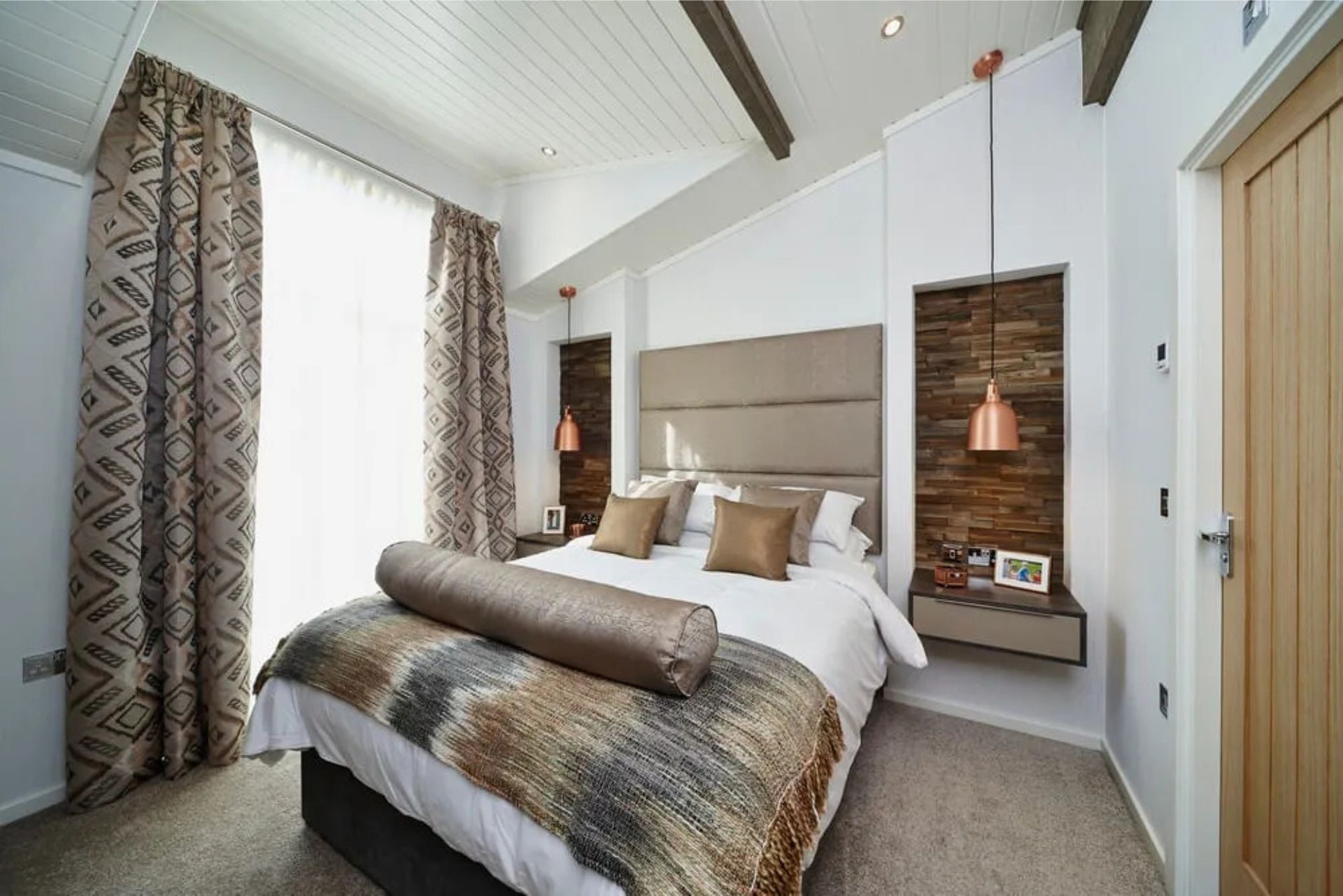 The bedrooms speak true luxury and comfort. Full height feature headboards over pocket sprung mattresses are set between split wood panelled alcoves with feature bedside pendant lights.
