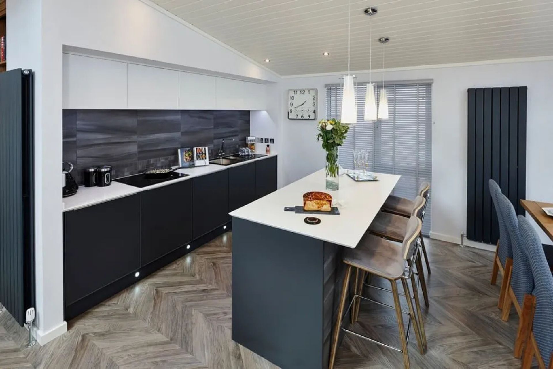 - Acrylic stone worktops and breakfast island with stools