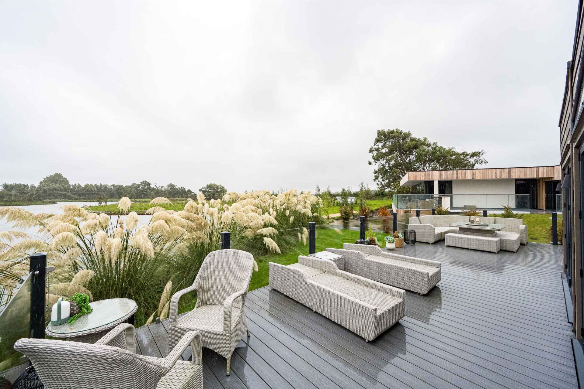 This two-story Nordica lodge is one of the most luxurious holiday homes on the village situated in an exclusive, gated community called Reeds Bay. The Nordica is the first of its kind with an incredible structure and design, including an internal stairwell to a roof terrace where you can watch the sun set over the lake.