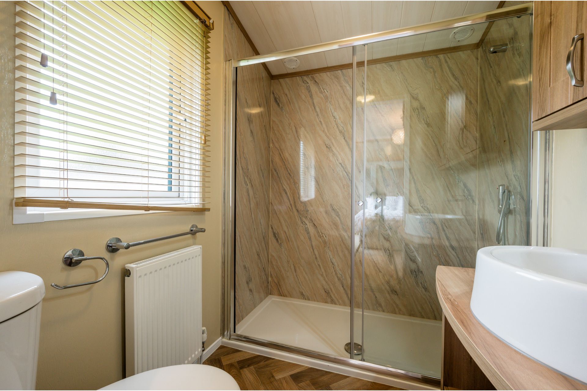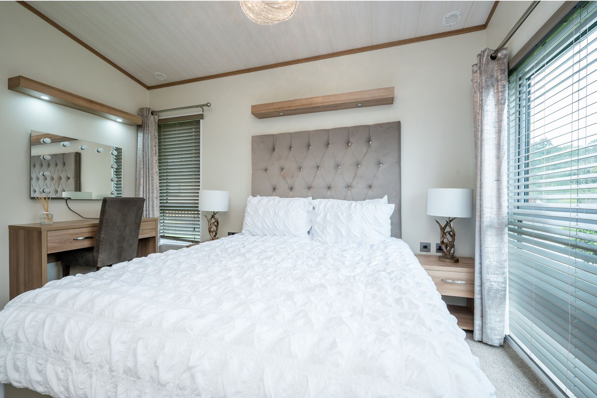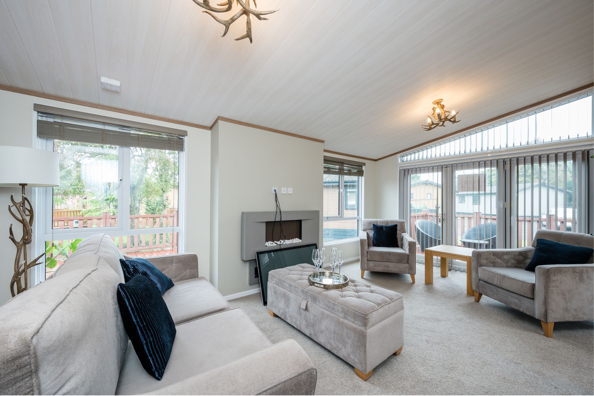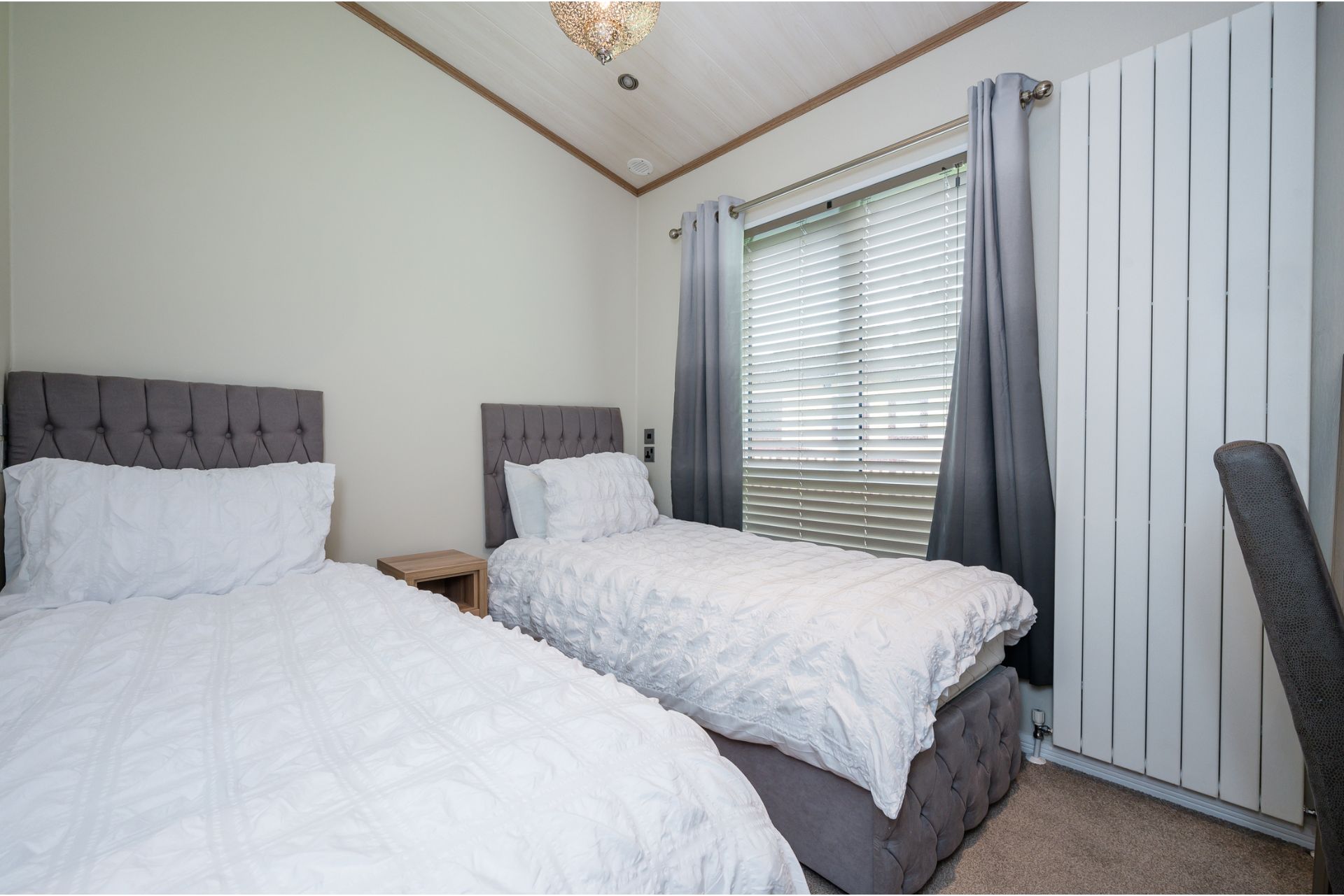 From the central hallway you will find the family bathroom with a bath and the two bedrooms. The master bedroom is luxurious with lots of storage on offer from the walk-through wardrobe which opens up to the large en-suite shower room. The second bedroom has twin beds with vanity unit and a wardrobe.  Throughout the lodge the furnishings are tasteful and luxurious with elegant curtains, statement headboards and Moroccan styled light fittings. Turn your dream of owning a Rivendale into a reality today.