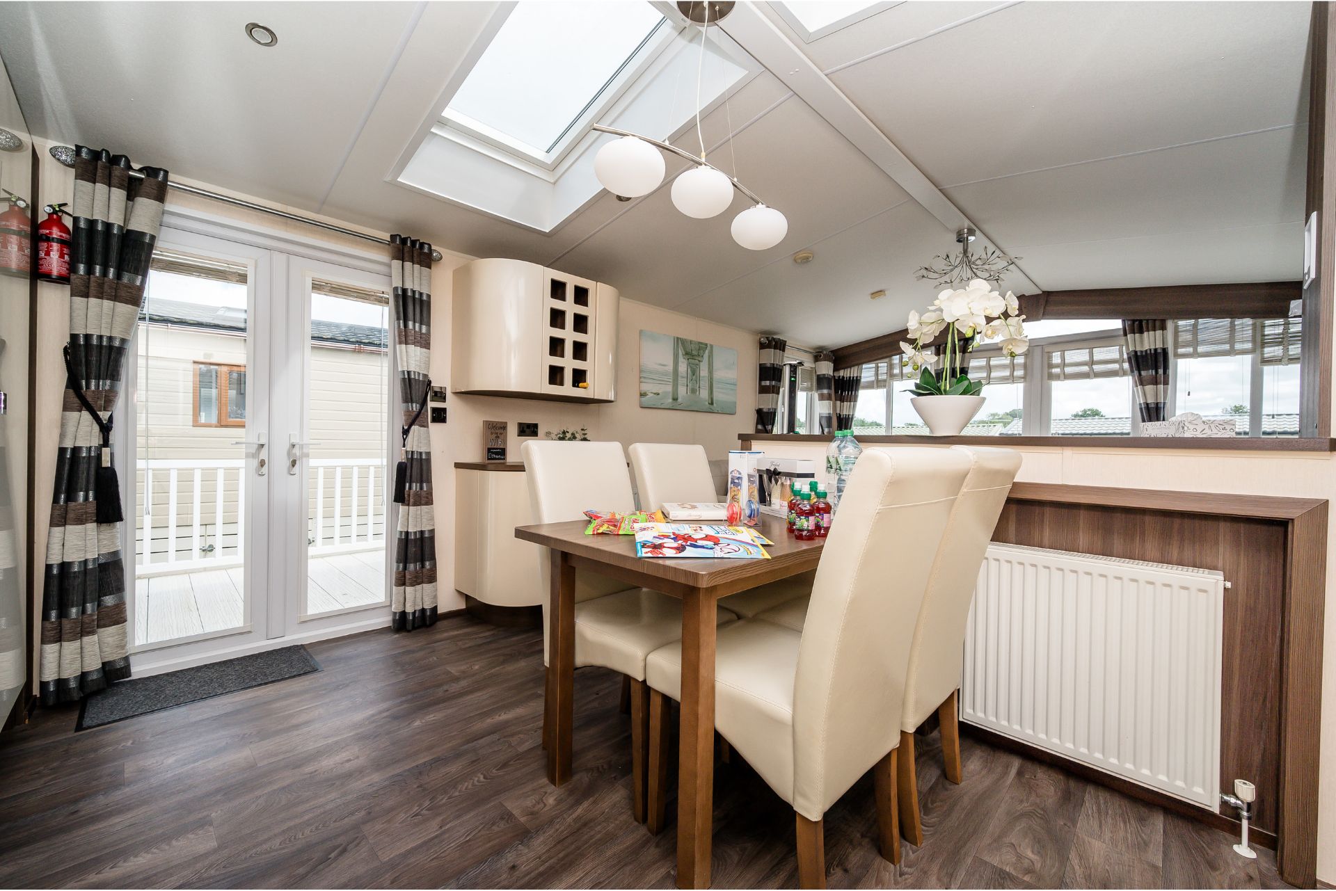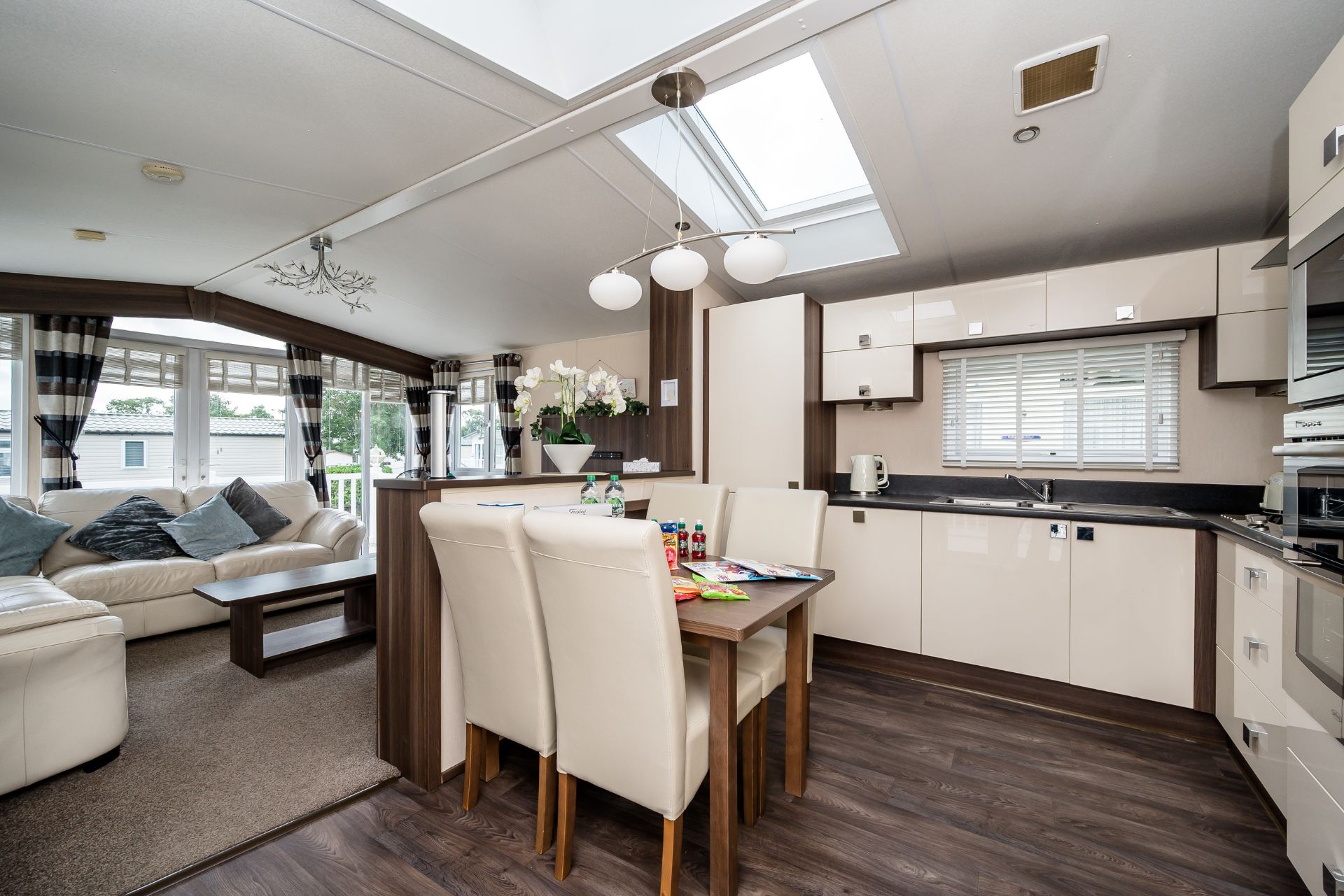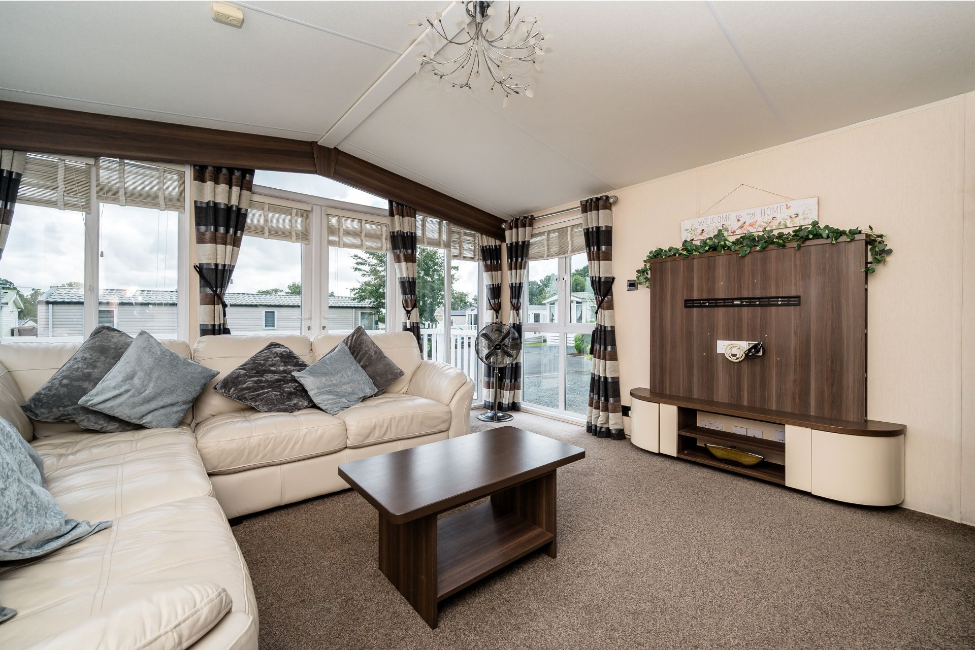 The Regal Symphony is located at 46 Larks Rise. The van briefly comprises of two bedrooms with master en-suite and twin room, living area with a large corner sofa and feature fire, open plan to the kitchen/dining area where you will find a bright modern kitchen with freestanding table and chairs.