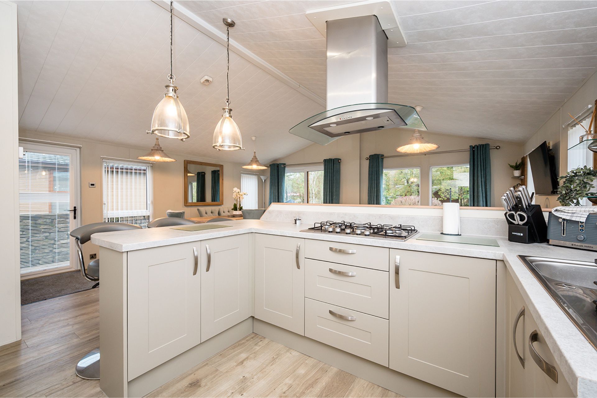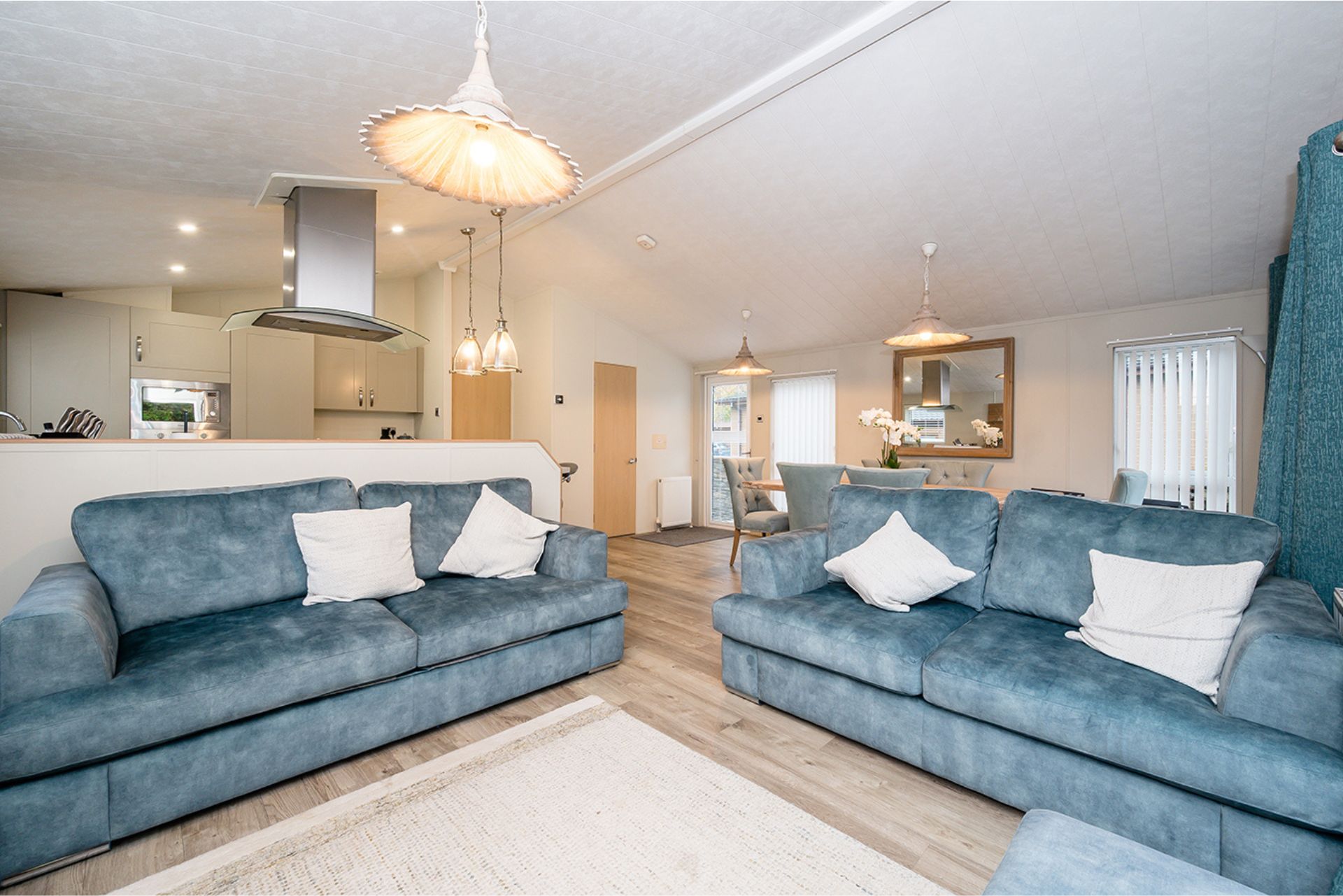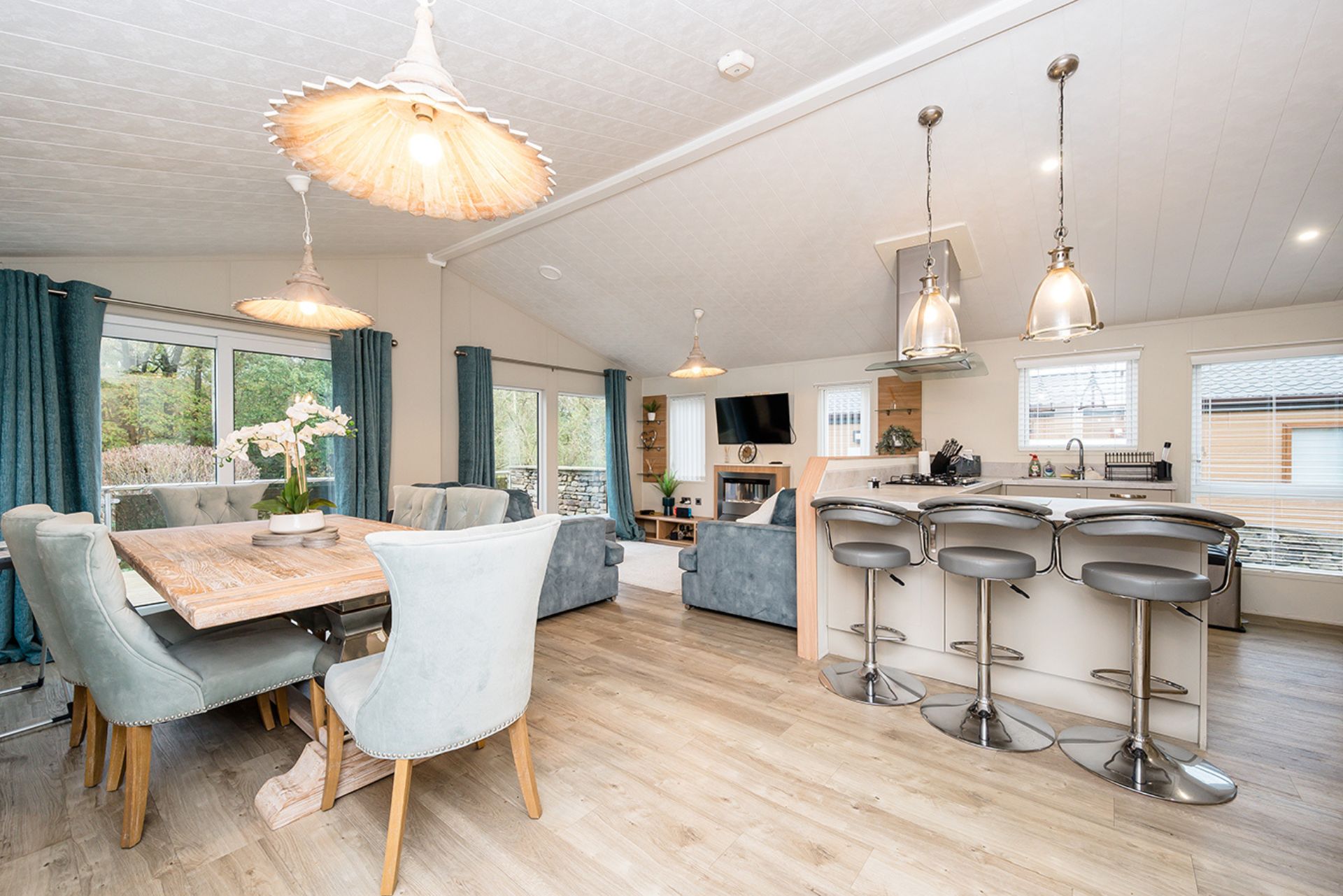 Upon entering this recently renovated lodge, you’re greeted by a bright and airy open-plan lounge, kitchen, and dining area. To the right, you’ll find a convenient cloakroom, providing the perfect place to store outdoor coats and walking boots.