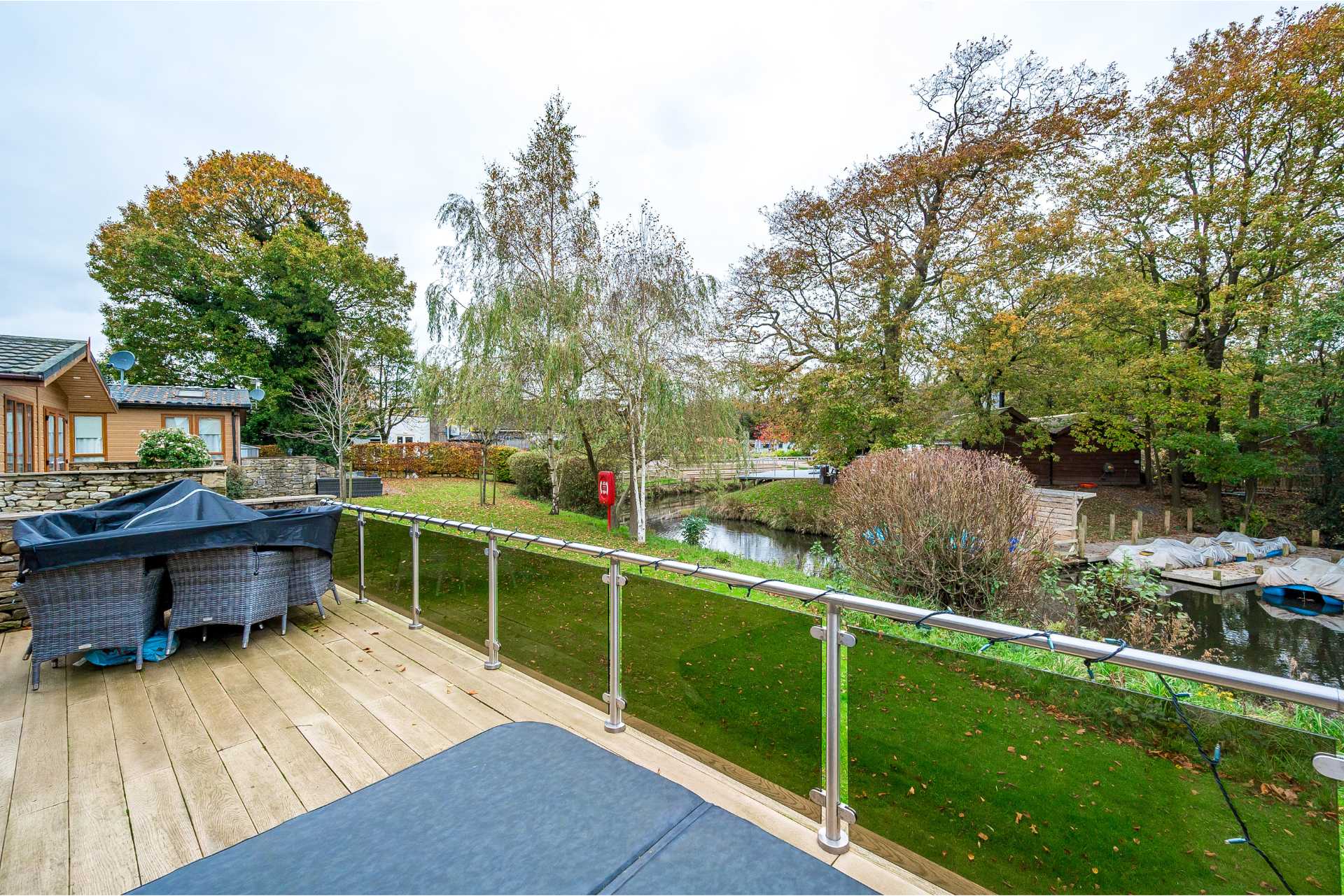 One of the standout features of this lodge is the beautiful nature views from the decking. Whether you’re enjoying a meal outdoors or simply relaxing, the tranquil sights of the trees and boating lake provide a peaceful setting. For ultimate relaxation, unwind in the sunken hot tub—perfect for enjoying nature in comfort and privacy.