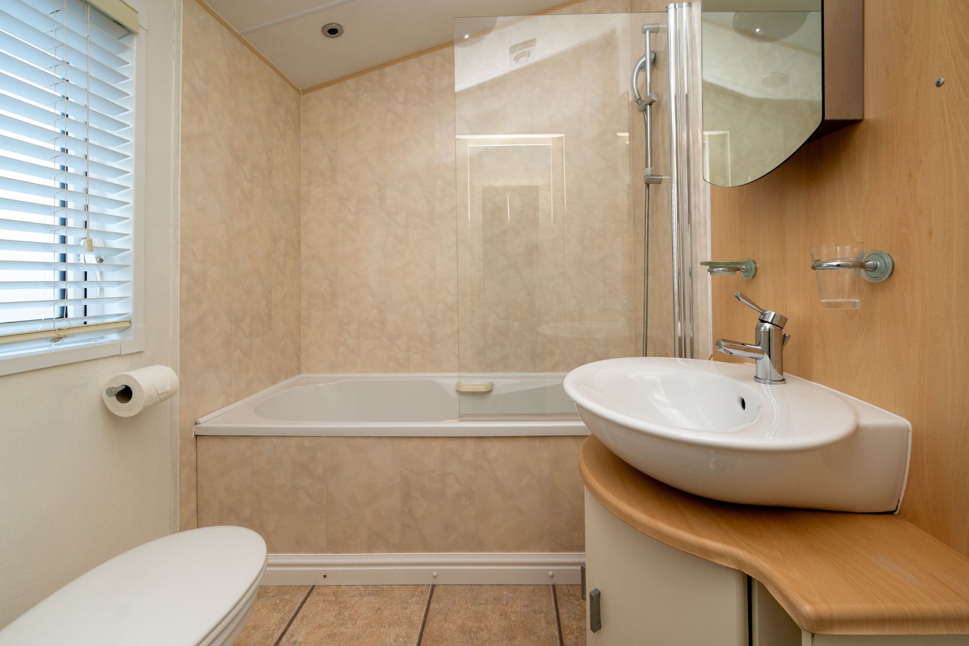 There are two double bedrooms in this lodge, the master bedroom features a walk in wardrobe as well as being en-suite. The second bedroom has fitted wardrobes and offers a lovely space for guests to sleep.